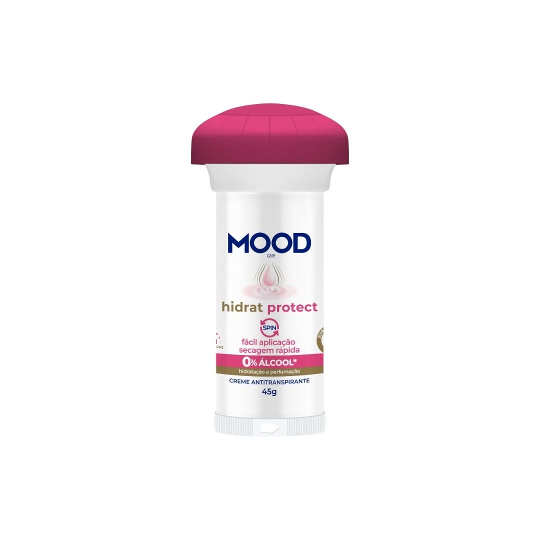 A fórmula do antitranspirante MOOD CARE HIDRAT PROTECT proporciona 72h de proteção duradoura, auxiliando no combate do mau odor causado pela transpiração e oferecendo uma sensação de frescor e segurança durante todo o dia.